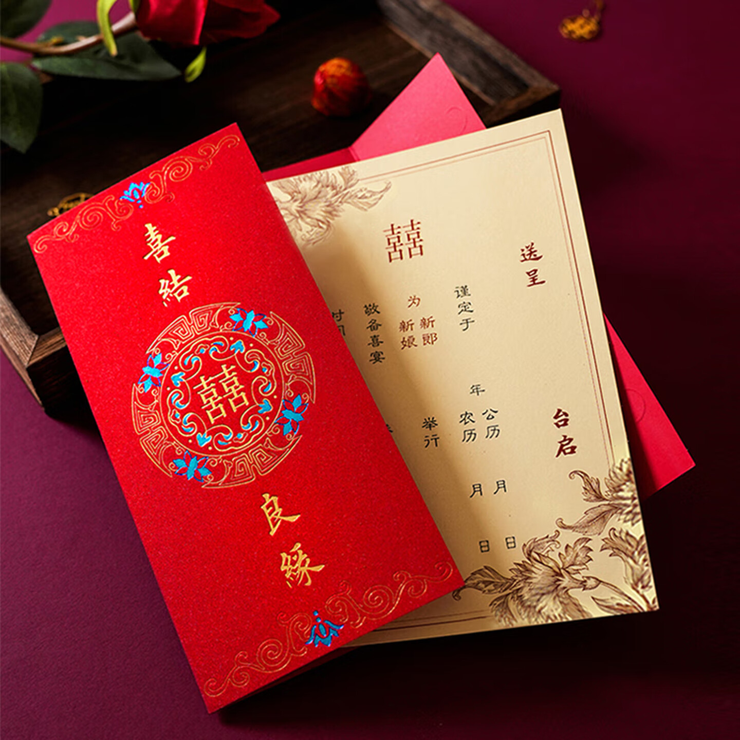 庆喜良缘请帖结婚请柬打印定制镂空婚礼喜帖复古窗格中式邀请函10个装