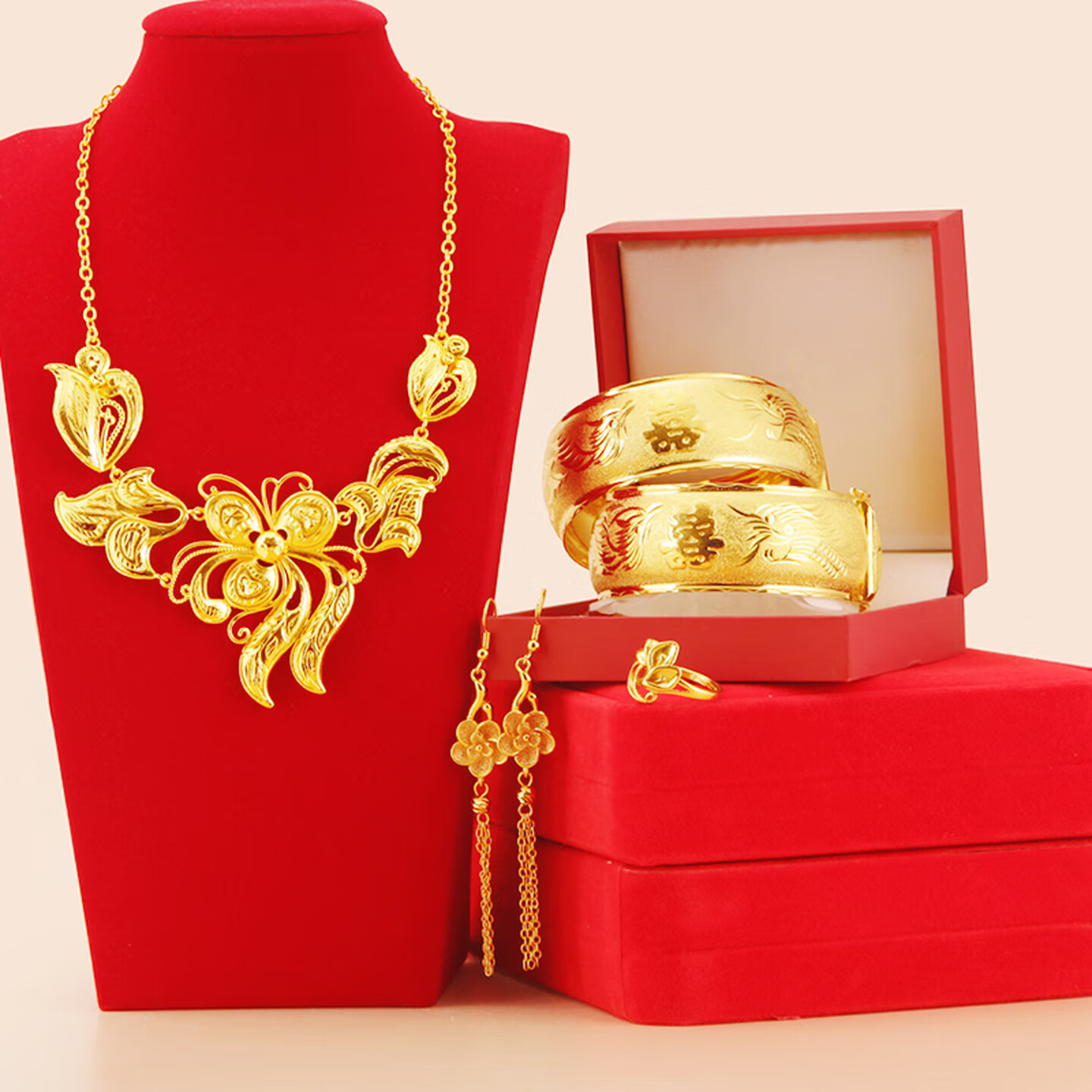 越南纯沙金项链结婚新娘三金首饰 仿真假五金镀金配婚纱女套装